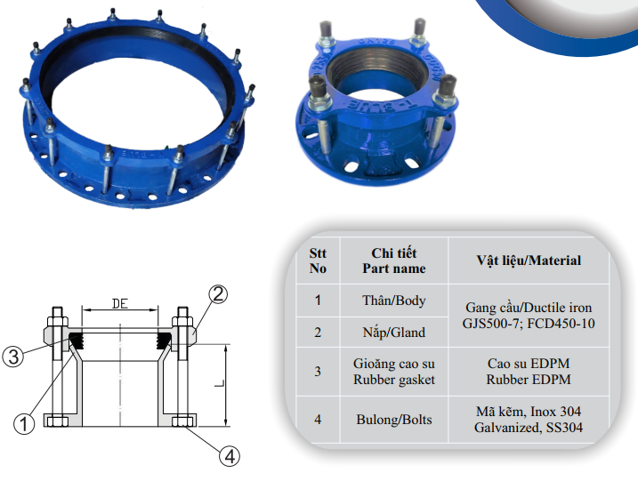 Phụ kiện gang cầu T-BLUE với ưu điểm hạn chế tối đa rò rỉ do rung động, thời gian làm việc lâu dài và dễ dàng lắp đặt, đấu nối, tiết kiệm thời gian thi công.